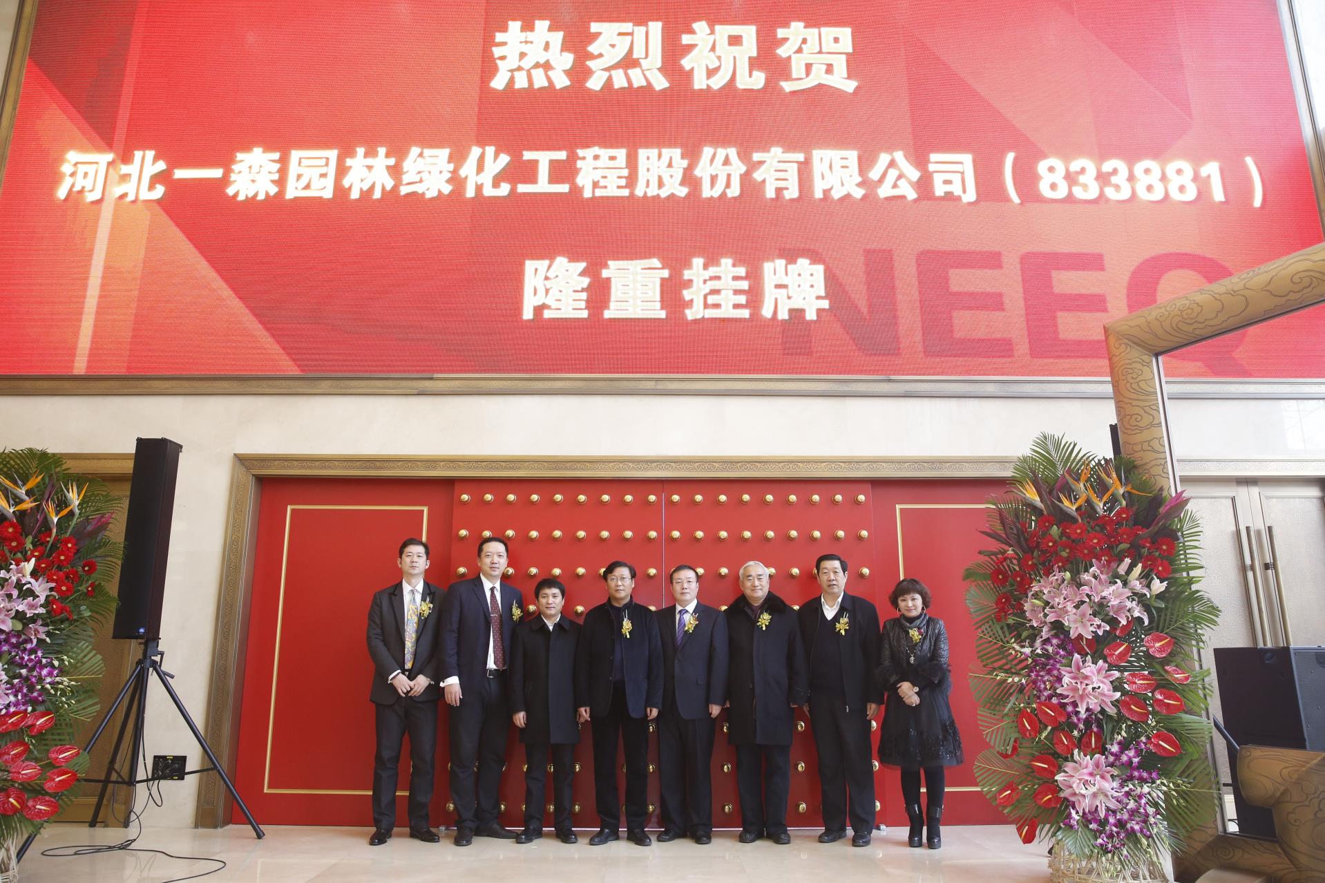 我公司在全國(guó)中小企業(yè)股份轉(zhuǎn)讓系統(tǒng)舉行隆重掛牌上市儀式,證券簡(jiǎn)稱:一森園林,證券代碼:833881